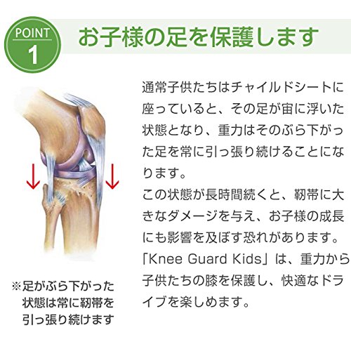 チャイルドシートに座っていると、足が宙にぶら下がった状態となり、重力はそのぶら下がった足を常に引っ張り続けることになります。 この状態が長時間続くと、靭帯に大きなダメージを与え、お子様の成長にも影響を及ぼす恐れが有ります。 Knee Guard Kids は重力から子供達の膝を保護します。