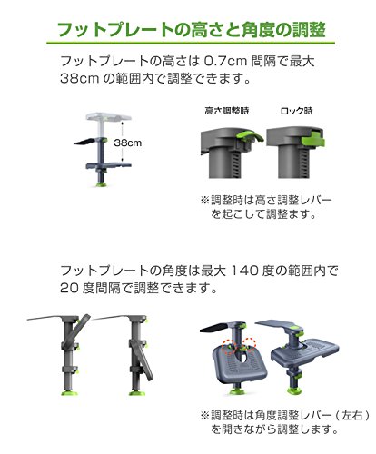 - 足の位置に合わせて高さの調節・角度の調節が可能!