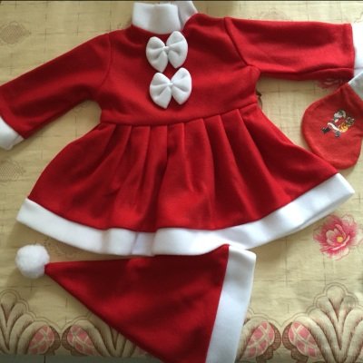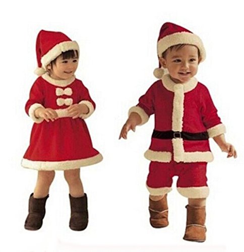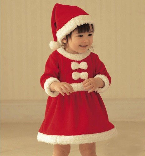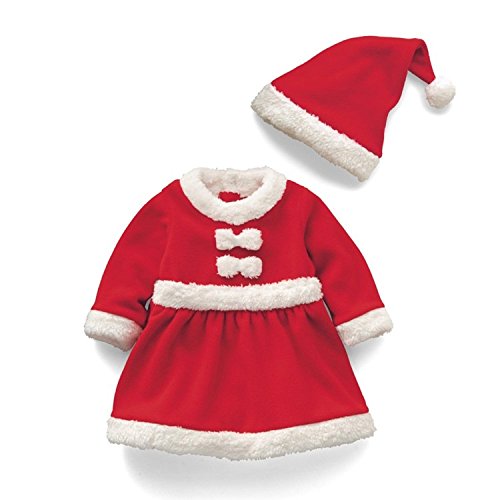 【ドリーム ショップ】サンタ服 帽子付き ベビー服 キッズ クリスマス サンタクロース 衣装 赤ちゃん サンタ服 (140cm適応, 女児)