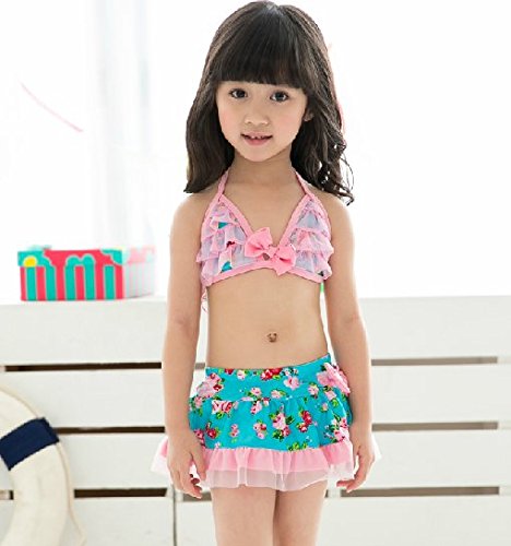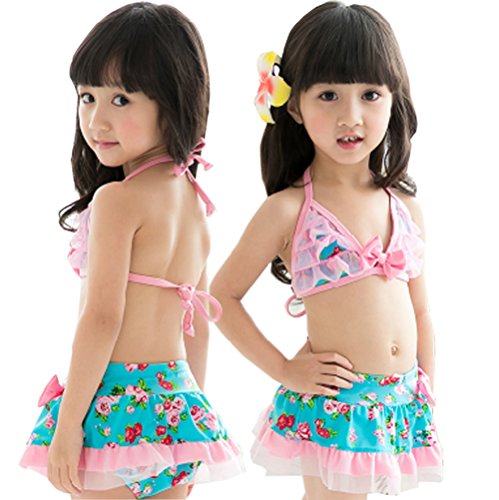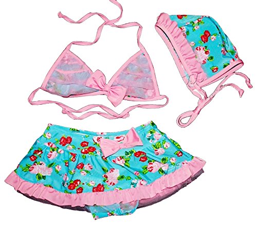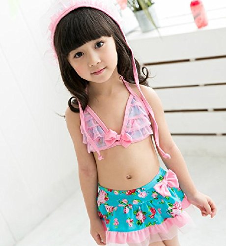 児童 女の子水着 水着 子供 水着 児童水着、女の子 ビキニ 乳児、赤ちゃん水着 リボン、多色 花模様 水着+帽子3点セット (XLサイズ:(約)身長:120-130cm適応)