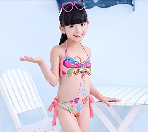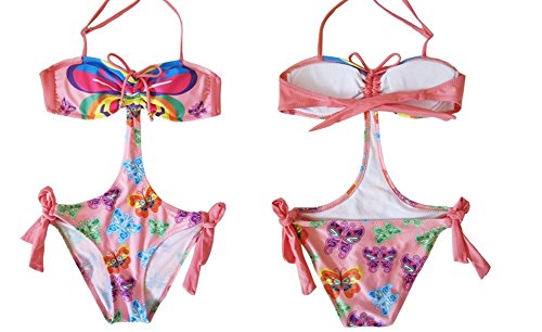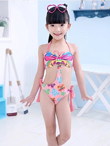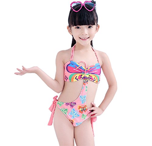 水着 女児 ガールズ 水着 キツズ ワンピース 水着 児童 ビーチ 水着 女の子ビキニ 子供水着 スイミングウェア 女の子水着 女児 海水浴 水着 蝶々模様 連体式水着 ピンク (XL)