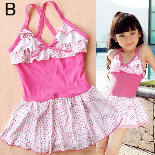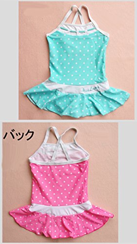 女児水着 子供 水着 ドット付き かわいい 可愛い女の子 水玉みずぎ 連体式 (90-115cm, ピンクA)