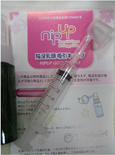 商品構成の中身、 1.特許取得キャップ1個 ,,, ,,, 2.中間ノズル2個,,, 3.注射器(サービス品),,, 4.保管ケース,,,, 5.スプレーボトル(キャップを濡らす為に使用)、、、、 乳頭陥没矯正商品の選び方法