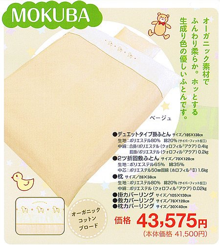 洗えるベビーふとんセット ☆MOKUBA☆ Quallofil・オーガニック
