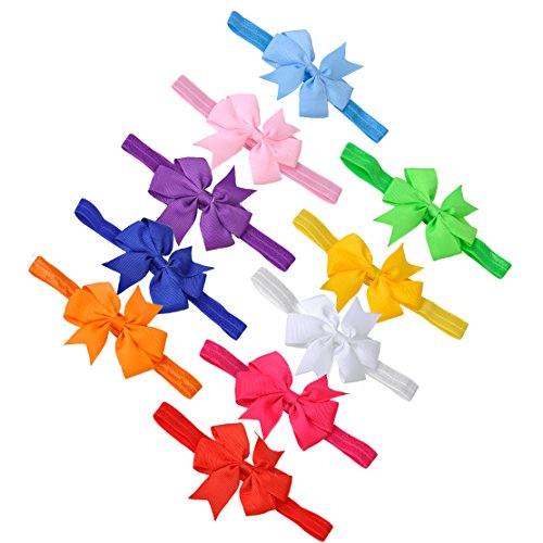 10個入り 弾性 フローラル 女赤ちゃん ボウヘアバンド グログランリボン 頭飾り