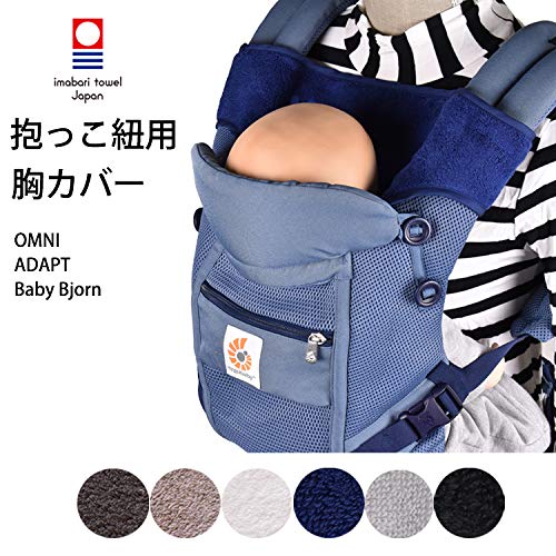 抱っこの際、顔を胸元でこする、よだれで服が濡れる、ネックレスができない、ニットや、ボタン・ジッパーなど洋服の素材を気にして着れないという問題を全て解決してくれる、今治タオルでできた対面抱っこ用のよだれカバーになります。 抱っこ紐のショルダー部分に簡単に装着ができます。 エルゴなど多くの抱っこ紐に装着できます。