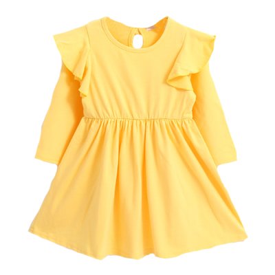 enchante petit(アンシャンテ プティ) キッズ 子供 バックリボン付肩フリル長袖ワンピース ≪全10色≫ 130cm #イエロー