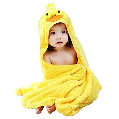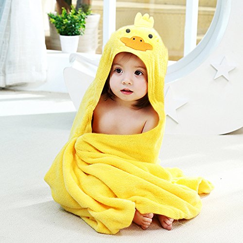 Enjoygojp フード付きタオル 子供 ベビー バスタオル バスローブ 綿 子供用 ポンチョ マント 出産お祝い ギフト 速乾 可愛い動物柄 柔らかい 90 * 90cm (yellow)