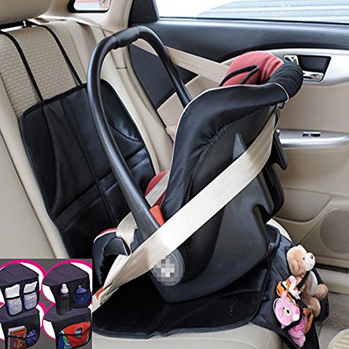 Enjoygojp チャイルドシートマット カーシートカバー 車保護防水シート ベビー車のシートカーシート滑り止め コンビ収納ポケット付き (1枚)