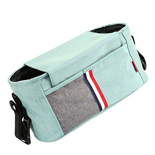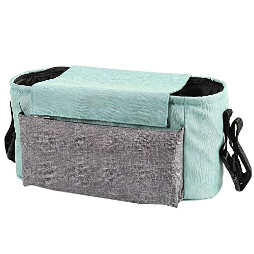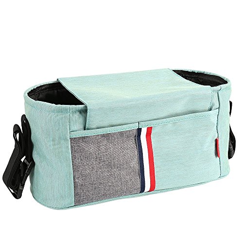 Enjoygojp ベビーカー用バッグ ベビー バッグ ベビーカー ドリンク ホルダー ポケット オーガナイザー 大容量 収納力抜群 取り外し可能なポーチ付 哺乳瓶、お菓子、ウェットティッシュ 万能ベビーカーアクセサリー (Green)
