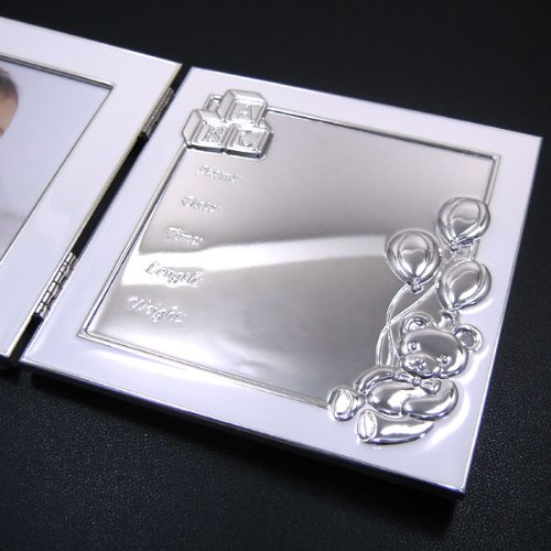お名前・誕生日時・身長・体重が刻印できる2面ベビーフレームです。