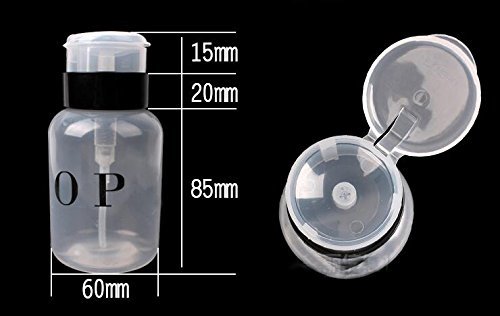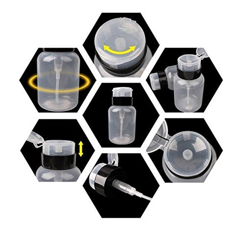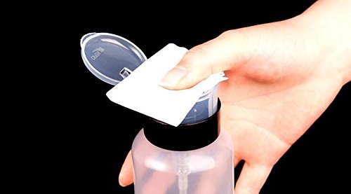 使いやすく、保管しやすい耐久性のあるプラスチック。 アセトン、クレンザー、ポリッシュリムーバー、メークアップリムーバー用。 ボトルに液体を入れてください。 単に綿パッドを上に置き、を押してを押してください。