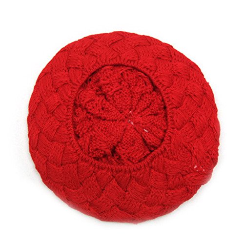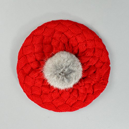 eshion幼児ニットかぎ針編みニットウール冬暖かい幼児キュートガールズビーニー帽子キャップベレー帽 カラー: レッド