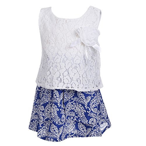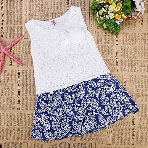 eshion ファッション 赤ちゃん 女の子 Oネック レース タンクトップ プリント ミニ Aライン スカート ツーピースセット US サイズ: 130 カラー: ホワイト