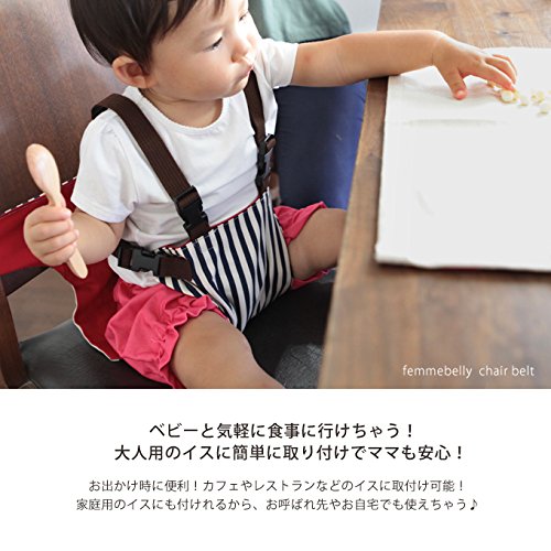 チェアベルト 大人用イスに簡単取付け 持ち運び便利 収納ポケット付きチェアベルト 外食のマストアイテム ファムベリー 日本製 (ストライプマルチピンク)