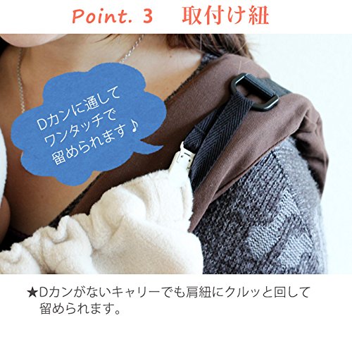 ワンタッチで取付OK。ベビーキャリーのDカンに通して留められます。