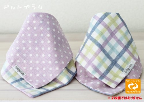 ハンカチがスタイに変身♪かわいいハンカチスタイ! 可愛いリバーシブル♪ ベビーの肌に優しいガーゼ素材 スタイ ファムベリー オリジナルスタイ (ドットプラム(チェック))