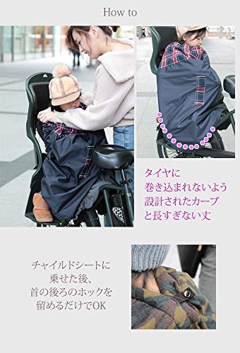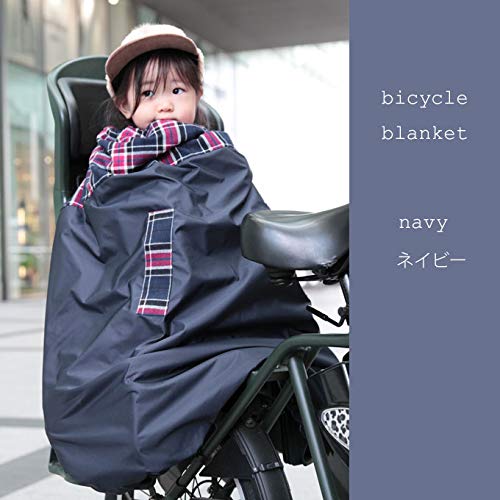 ファムベリー 自転車用 防寒カバー ブランケット 自転車のチャイルドシートやベビーカーでも使える 首回りもあったか 撥水防風 フリース 日本製 (ネイビー)