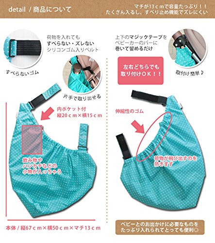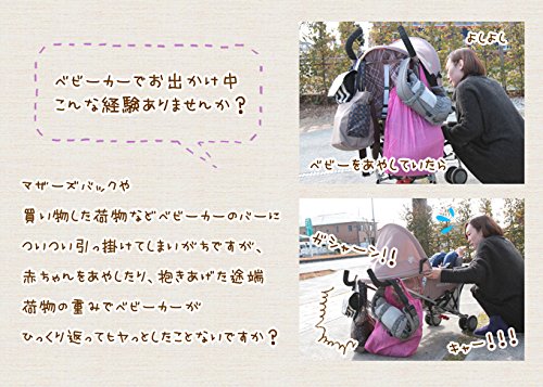 ベビーカーのハンドル部分の荷物を分散するのでベビーカーが倒れるのを防ぎます。