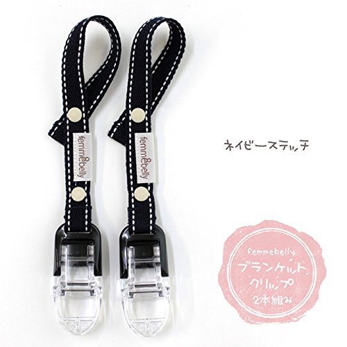 【ブランケットクリップ2本組み】ブランケットやタオルケットのずり落ち防止に。トイストラップとしても使えます♪【日本製】 (ネイビーステッチ)