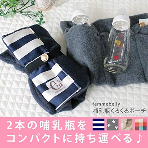 哺乳瓶くるくるポーチ 哺乳瓶ポーチ 哺乳瓶ケース 2本 Lサイズ 哺乳瓶ホルダー 双子 ミルク 育児 (グレースター)