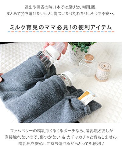 遠出や帰省の時、1本では足りない哺乳瓶。 まとめて持ち運びたいけど、傷ついたり割れたりしそうで不安・・。 ファムベリーの哺乳瓶くるくるポーチなら、哺乳瓶どおしが 直接触れないので、傷つかない & カチャカチャと音もしません。 哺乳瓶を安心して持ち運べるからとっても便利♪
