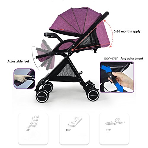 高い風景のベビーベビーカーはリクライニング軽量折りたたみベビーカート、紫/紺/赤、66 * 51 * 94センチメートル座ることができます ( Color : Purple )