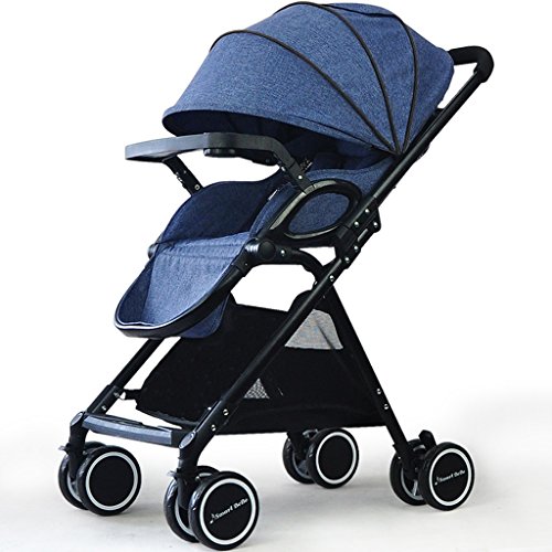 高い風景のベビーベビーカーはリクライニング軽量折りたたみベビーカート、紫/紺/赤、66 * 51 * 94センチメートル座ることができます ( Color : Navy Blue )