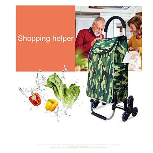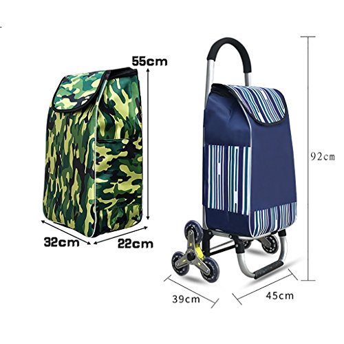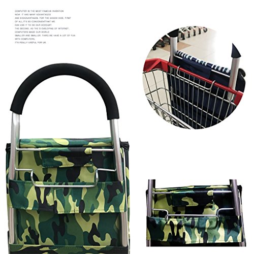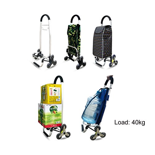 - ショッピングカート階段を上げるカート折りたたみトロリーポータブルスーパーマーケット40kg 39L防水バッグと弾性ロープトリプルホイール付き