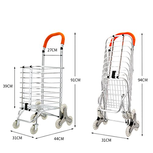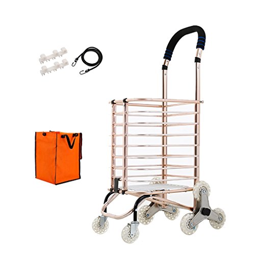 ショッピングカート ショッピングカートトロリークライミング階段折りたたみ式8輪ポータブルスーパーマーケット家庭用アルミ合金ロード50kg 37Lバッグ付き