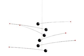 FLENSTED mobilesを代表する定番商品で、オーレ・フレンステッド氏が初めてデザインした記念すべきモビール。1970年発表。6本の水平なバーが「重」と「軽」という両極の間にあって絶えず揺れ動き、緊張感を作り出しています。