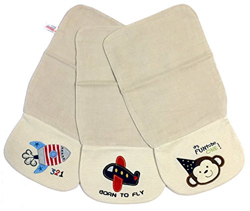 - 赤ちゃんの背中に当てて、汗をかいてもさっと抜き取るだけの、簡単お着替え!・モンキー、飛行機、ロケットのおしゃれな刺繍で、丁寧に縫い上げています。 ・イラストの背面には、「I ♡ Dad and Mom」 パパとママの刺繍入り♪