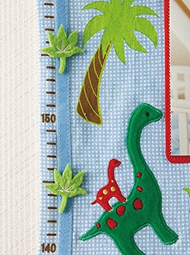 ベビーザウルスの行進がさわやかなブルーの生地に映える、ベビー身長計フレームです。