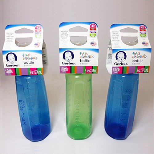 3 Gerber BPAフリーBabyボトルFirst Essentials 9オンス漏れ防止ベビーブルーFeeder