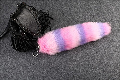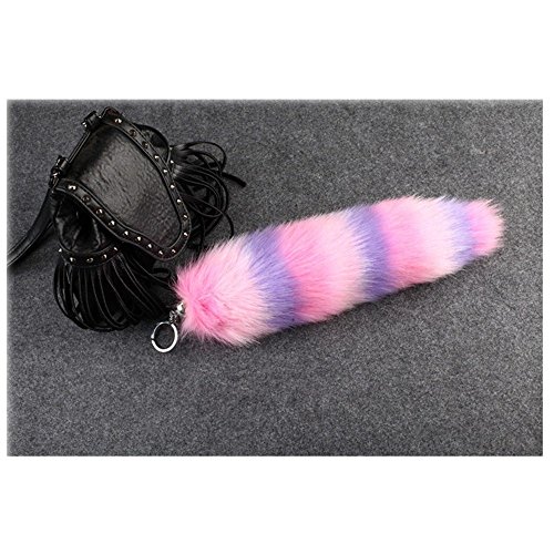 25 cmの本物のアメリカ ラクーンテイルの毛皮のコスプレ・トイ・ハンドバッグ・アクセサリーのキーホルダーリングフック10inches (pink+blue)