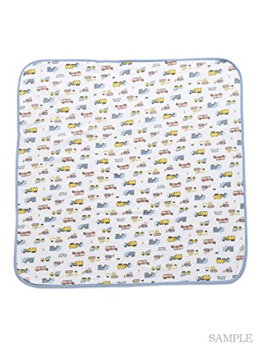 異なるデザインの車と、アニマルモチーフ、gelato piqueのロゴをMIXしてデザインしたブランケット。すっきりとしたシルエットに見せる、アウトラインのパイピングがポイント。たたんだときに綺麗にまとまるよう、角に浅い3角形のポケットをつけています。