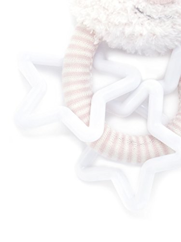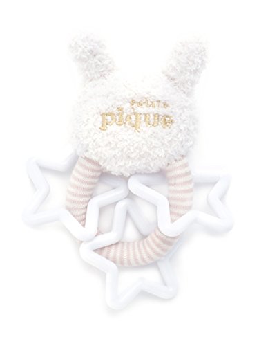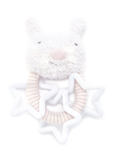 スマイルフェイスのラビットが、happyな気分にさせてくれるガラガラ。スター形パーツを大胆にあしらって、ポップ感漂う仕上がりに。モチーフ裏面へロゴ刺繍を施し、ブランドらしいアクセントもプラス。出産祝いなどの、贈り物としてもオススメです。