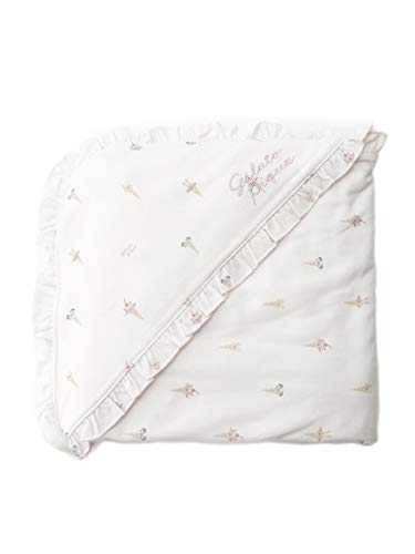ジェラートピケらしいアイスクリーム柄をモチーフに描いたシリーズです。ワッフルコーンの上に、ネコやクマ、ウサギモチーフのミニチュアアイスがのった、アニマルアイスクリーム柄をちりばめています。ウエアとおそろいで楽しめるブランケットは、外出時、寒い時にさっと被せられるフード付きデザインがポイントです。