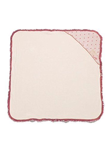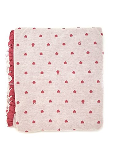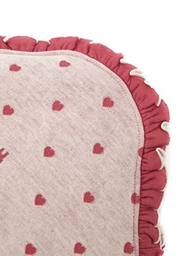 ヒラヒラとフリルをデコレーションした、かわいらしさ満点のブランケット。ハートのジャガード柄には、こっそりアニマルやイニシャルロゴが隠れていて、遊び心のあるデザインに。角の部分には一か所フードポケットが付いているので、ベビーのおくるみとしても重宝します。