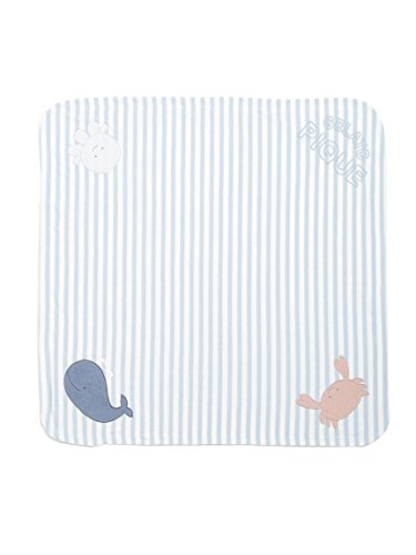 海の中をイメージしたマリンボーダー柄シリーズのブランケットです。冷房の強い夏のお出かけこそ、丸めてバッグにしまえる薄手で暖かい一枚が活躍します。同シリーズのスタイやウェアと合わせて贈り物にしても喜ばれます。
