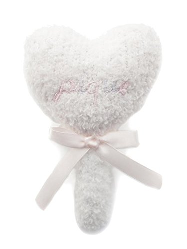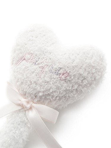 ハートをモチーフにした、愛くるしいルックスに心惹かれるガラガラ。ふわふわとしたやわらかなマテリアルで、握ったときの質感も優しい逸品。リボンやカラフルなロゴ刺繍など、細部にもこだわりが光ります。贈り物にもオススメ。