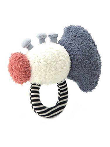カラフルなトランペット型のおもちゃ。。キュッと握るとガサガサと音がして、お子様の聴覚と好奇心を刺激します。ハンドルにクリップなどをつけておけば、ベビーカーやチャイルドシートに付けて外出時のお供にも。