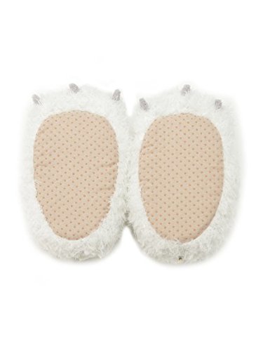 ふわもこした柔らかなタッチで、お子様の足を優しく包み込むルームシューズ。シロクマさんの足をモチーフにしたフォルムが、愛らしさを一層引き立てます。同シリーズの帽子と合わせて、イベントなどのコスチュームにすれば注目の的になること間違いなし。