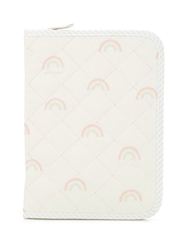 ふっくらとした手触りが心地いい、キルティングステッチ仕様の母子手帳ケースです。レインボー柄を散りばめた、ハッピーオーラただようデザインがGOOD。ブランドロゴを入れたタグが、ほどよいアクセントに。