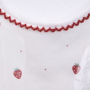 女の子ベビーのハートをくすぐるラブリーナイチゴ柄デザインです。