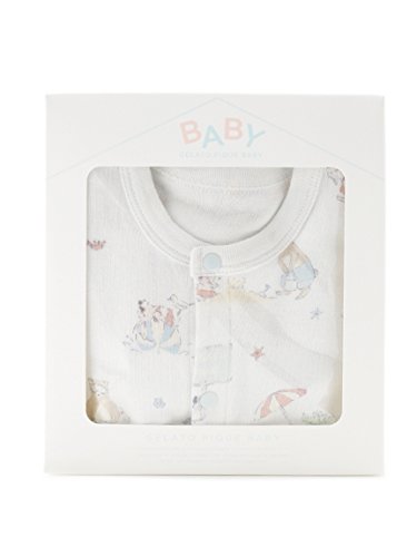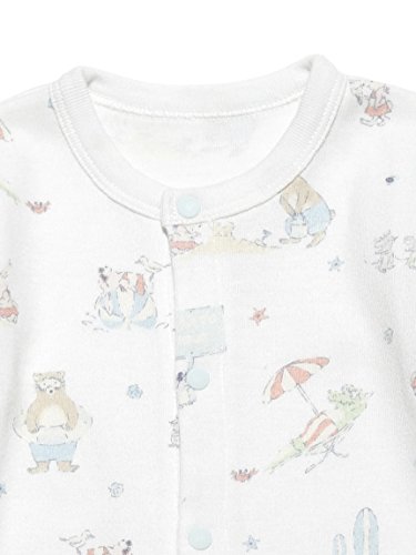 ビーチで砂遊びをするクマとウサギや、水着を着たワニ、フラダンスをするネズミの三兄弟など、ビーチで遊ぶアニマルたちを描きました。ドレスオールとロンパースの2WAYで着ることができるので、お子様の成長に合わせて着こなしアレンジもしやすくなっています。専用のギフトボックス付きで、贈り物にもおすすめです。