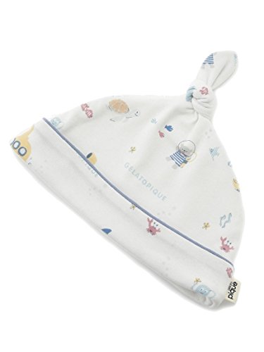 元気いっぱいのサブマリンプリントが、とってもキュートなキャップ。キュッと結んだてっぺんのフォルムで、お子様の愛らしさを一層引き立たせます。通気性の良いカットソー生地で仕立てているから、汗をかきやすい時期にも安心。