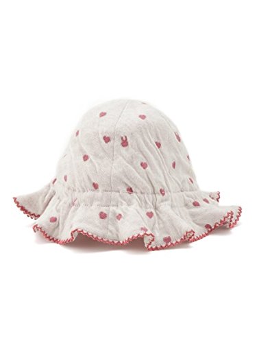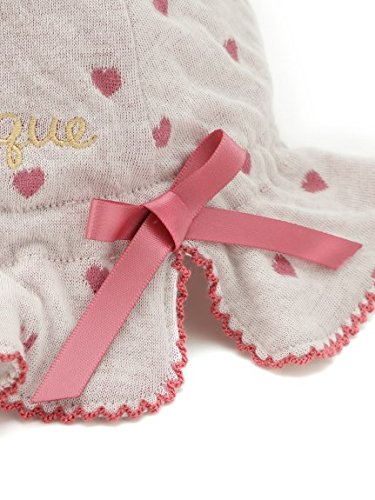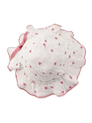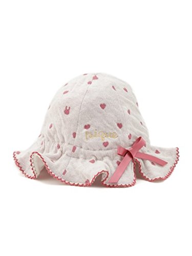 ハートのジャガードに、ちょこんとデコレーションされたリボンがキュートなキャップ。日よけ部分は、ヒラヒラとフリルのような愛らしい仕上がりになっています。これからのシーズンのお散歩に、日差しからお子様を守ってくれる重要なアイテム。