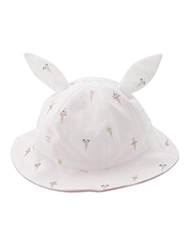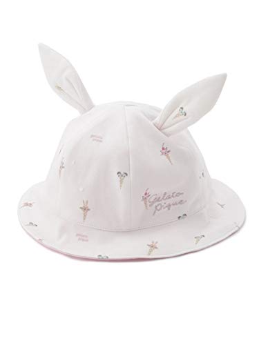 ジェラートピケらしいアイスクリーム柄をモチーフに描いたシリーズです。ワッフルコーンの上に、ネコやクマ、ウサギモチーフのミニチュアアイスがのった、アニマルアイスクリーム柄をちりばめました。写真映えするうさ耳付きのハットで愛らしく、裏面はピンクで脱いでも可愛く仕上げました。また、ゴム付きで、風に飛ばされない賢いつくりも魅力です。