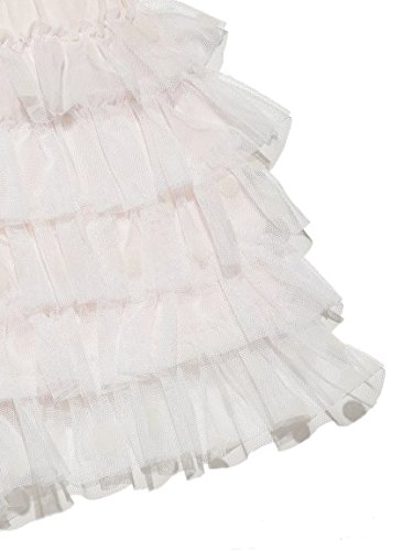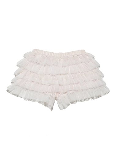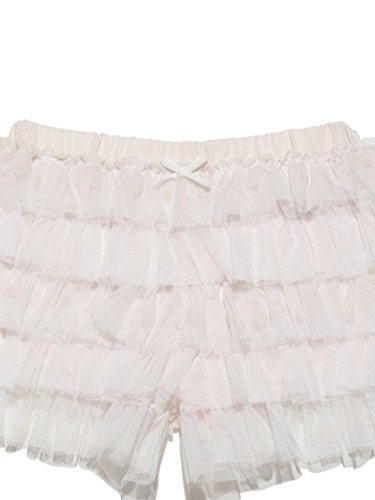 ドットを浮かべたチュール地で、ふわふわっと可憐なフリルをデザイン。たっぷりとティアードさせて、華やかなボリュームを描いたショートパンツです。愛らしさを存分に伝えながらも、ワントーンでまとめてコーディネートしやすいアイテムに。